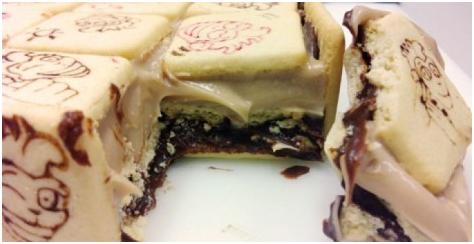 2 pacotes de biscoito recheado quadrado separados na metade (uma parte com recheio e outra sem recheio)