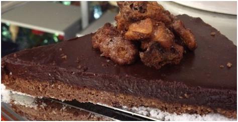 Despeje este creme sobre a massa de waffer fria (que está na fôrma) e leve para gelar por mais 2h. Retire da geladeira, desenforme, enfeite com as nozes carameladas (reservadas acima) e sirva em seguida com sorvete de creme ou chantilly.